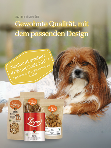 Der Leyen-Geschenkgutschein für Futter, Spielzeug oder Zubehör inkl. Versand: Ein wundervolles Geschenk für alle Hundehalter und jeden Anlass, gültig im Leyen-Hundefutter Online Shop.