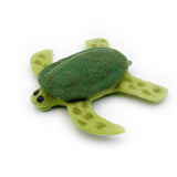 Grüne Schildkröte aus organischem Woll-Filz, handgefertigt in einem Fair-Trade-Projekt in Nepal für Überlebende von Naturkatastrophen.