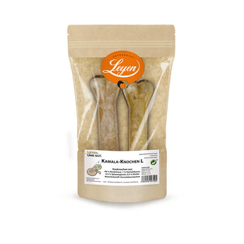 Von den gefüllten Kauknochen mit Kamalabaum (Mallotus philippensis) profitieren Hunde jeden Alters. Bestandteile der Kamala-Pflanze findet häufig Anwendung in der ayurvedischen Medizin. Kamalabaumfrüchte in Pulverform wirken antibakteriell & antiparasitäre. Sie unterstützten den Organismus im Kampf gegen Würmen und können Darm- und Magenbeschwerde mildern.